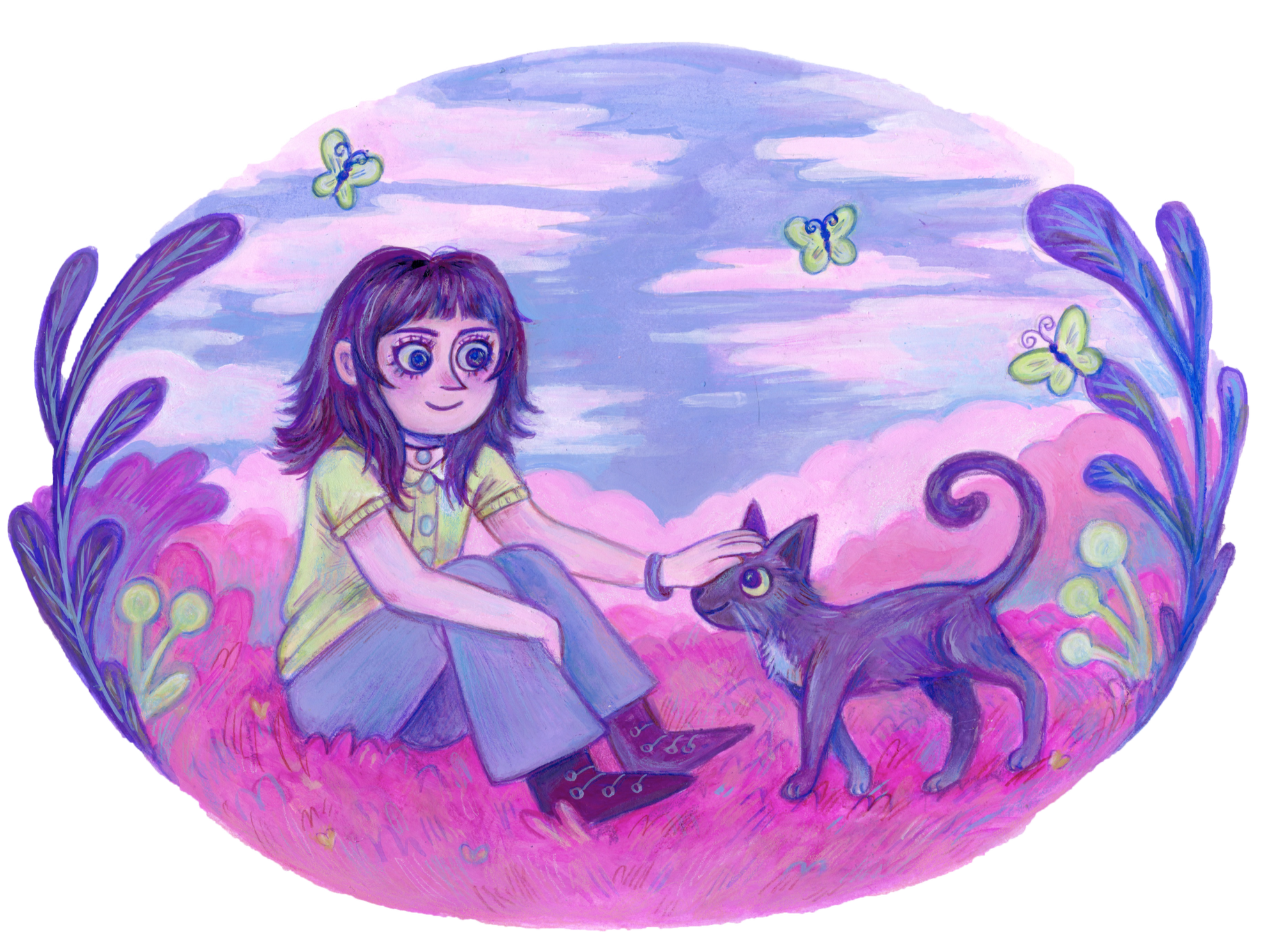 I am constantly inspired by nature, fantasy, and the small, cute and cozy moments in life. I live with my cat, Gizmo, who is always curious about what I’m working on. I aim to create uplifting and magical narratives with my illustrations, reaching out to comfort a variety of audiences.